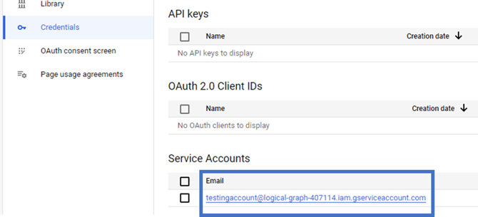 Go back to the Credentials tab and select the Service Account you just created: